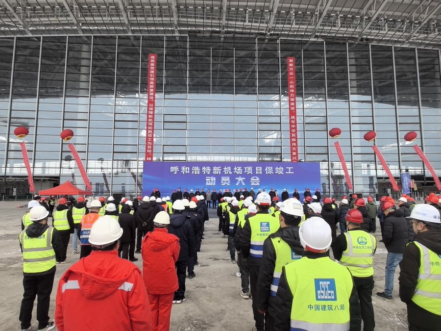 北疆新聞呼和浩特3月5日電(記者 張?chǎng)?人勤春來(lái)早,奮進(jìn)正當(dāng)時(shí)。3月5日上午,呼和浩特新機(jī)場(chǎng)項(xiàng)目建設(shè)現(xiàn)場(chǎng)召開(kāi)保竣工動(dòng)員大會(huì),為確保呼和浩特新機(jī)場(chǎng)項(xiàng)目2024年底竣工,吹響決戰(zhàn)決勝的號(hào)角。