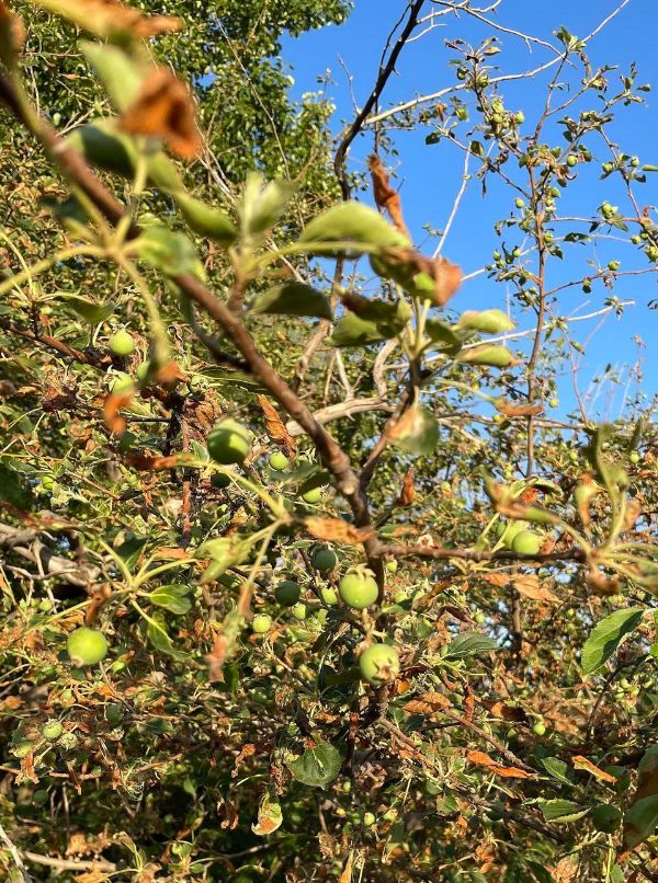 ??多年后,隨著條件改善,村里打上機(jī)井,大壩逐漸廢棄,壩下無人料理的果樹卻還年年結(jié)果。今年,又有不少綠色小果子掛在枝頭。馮玉寬每到夏天都要回來摘一點(diǎn),帶回家曬果干?!斑@就是一種情結(jié)。小時候放暑假,我們孩子就來這吃果子,吃到肚脹……”
