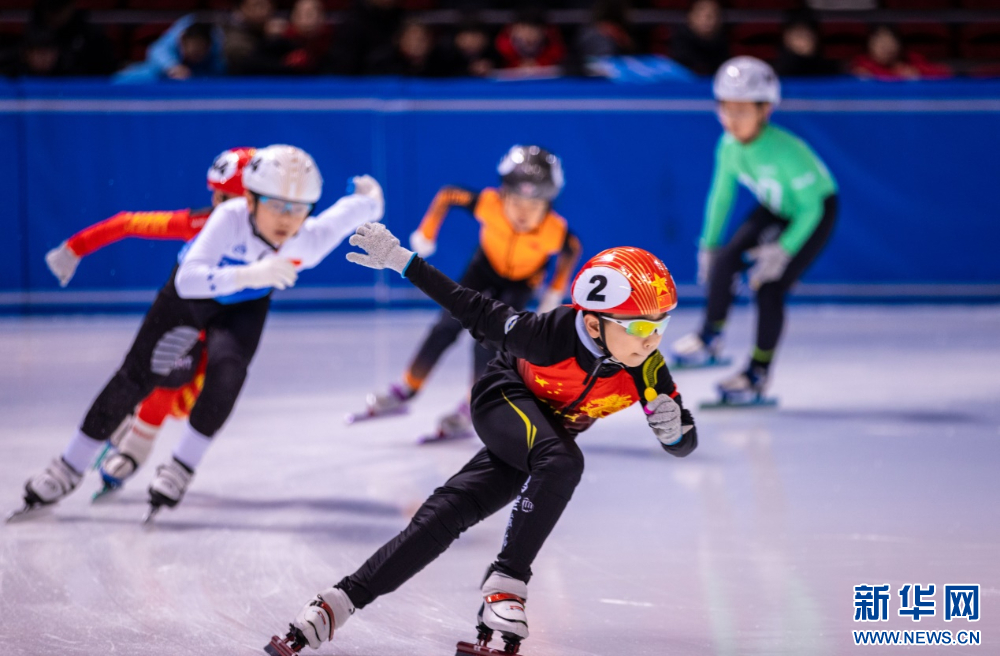 ??12月15日,參賽小選手在呼和浩特市冰雪運(yùn)動(dòng)系列活動(dòng)短道速滑公開(kāi)賽比賽中。新華網(wǎng)發(fā)(丁根厚 攝)