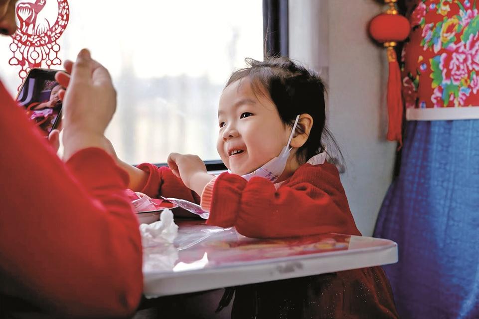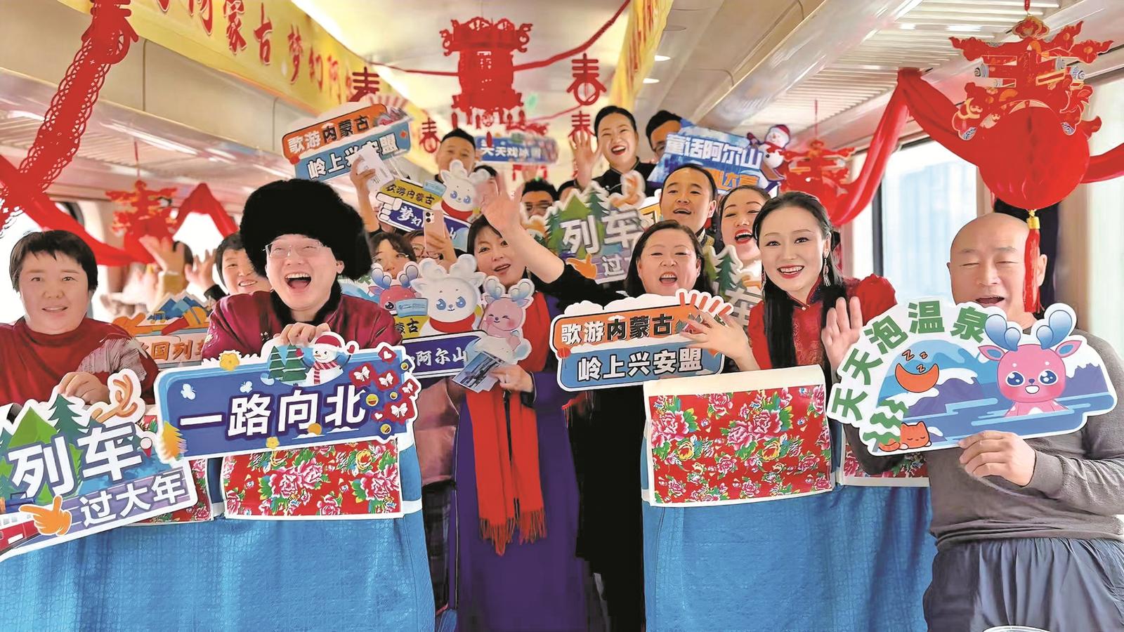 一張張貼在車窗上的“非遺”窗花剪紙,一條條紅黃藍大花座椅枕巾,一節(jié)節(jié)以藍天白云為底色的車廂頂棚,一首首悅耳的草原歌曲和悠揚的馬頭琴聲……這個冬季,一列列由內(nèi)蒙古興安盟烏蘭浩特往返于阿爾山百年老車站的“歌游內(nèi)蒙古 夢幻阿爾山”冰雪主題列車成為人們爭相體驗的旅游產(chǎn)品。