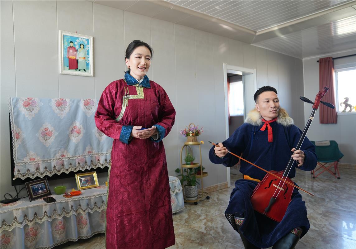 “我們編排了原創(chuàng)蒙古劇《駝鄉(xiāng)新傳》《寶德爾石林傳說》、歌舞劇《烏蘭牧騎走邊關——望遠鏡》等,展現北疆文化的獨特魅力以及各民族團結友愛的動人風貌?!?/p>