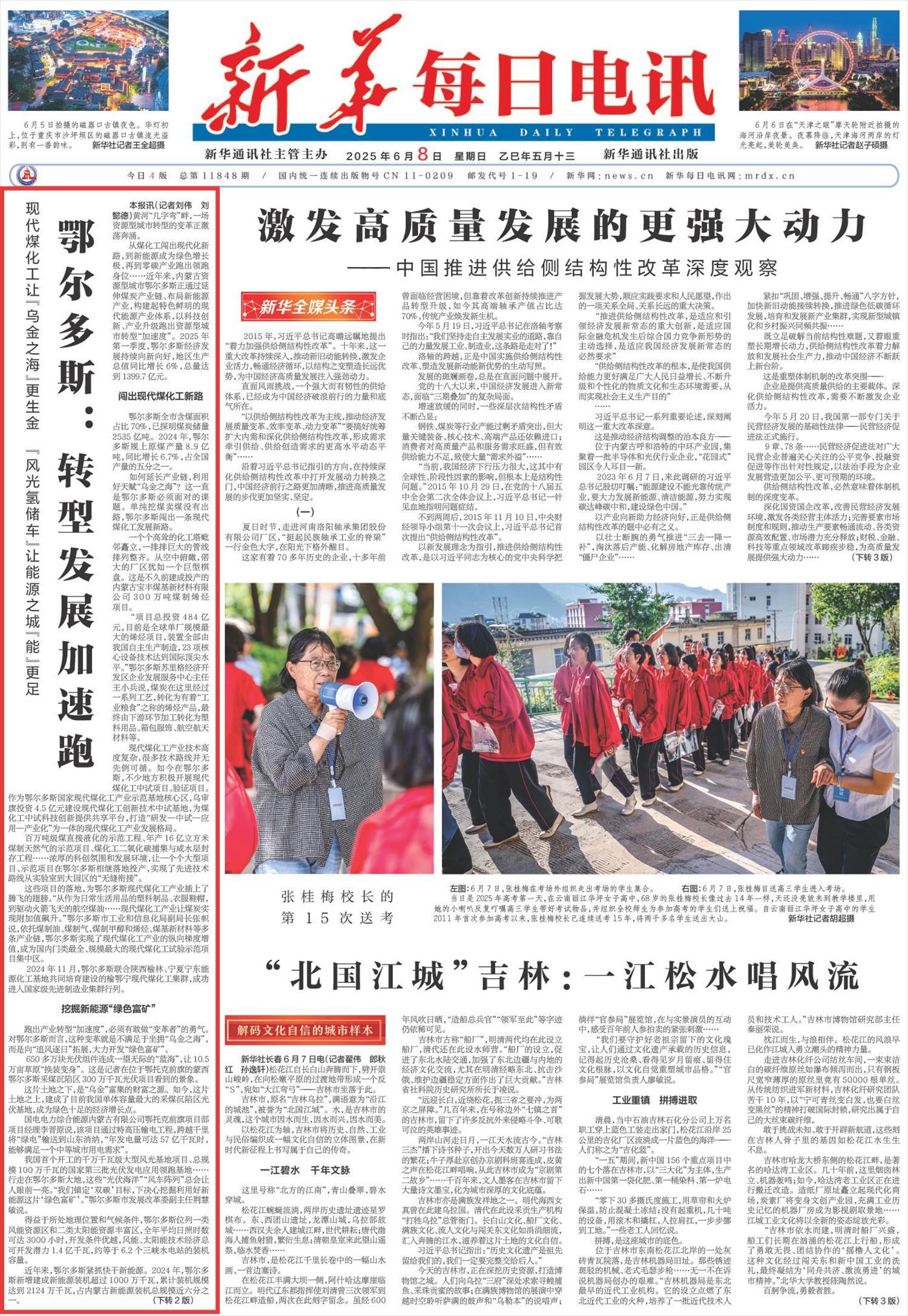 2025年6月8日,《新華每日電訊》第1版刊發(fā)題為《鄂爾多斯:轉型發(fā)展加速跑》一文,報道了近年來,內(nèi)蒙古資源型城市鄂爾多斯正通過延伸煤炭產(chǎn)業(yè)鏈、布局新能源產(chǎn)業(yè),構建起特色鮮明的現(xiàn)代能源產(chǎn)業(yè)體系,以科技創(chuàng)新、產(chǎn)業(yè)升級跑出資源型城市轉型“加速度”。