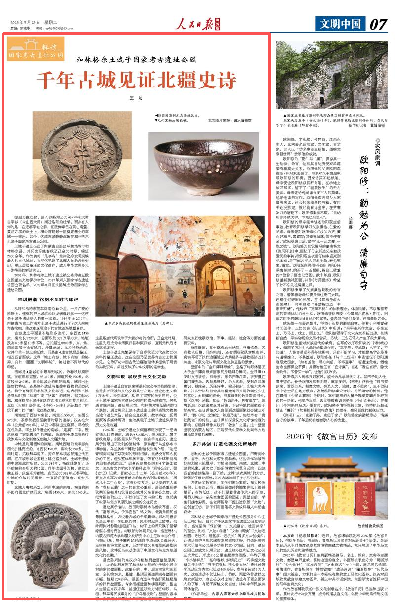 2025年9月23日,《人民日?qǐng)?bào)海外版》第7版刊發(fā)題為《和林格爾土城子國(guó)家考古遺址公園千年古城見證北疆史詩(shī)(探訪國(guó)家考古遺址公園)》的文章,報(bào)道了土城子遺址坐落于內(nèi)蒙古自治區(qū)呼和浩特市和林格爾縣,其歷史跨越春秋至遼金元時(shí)期,綿延2000余年。
