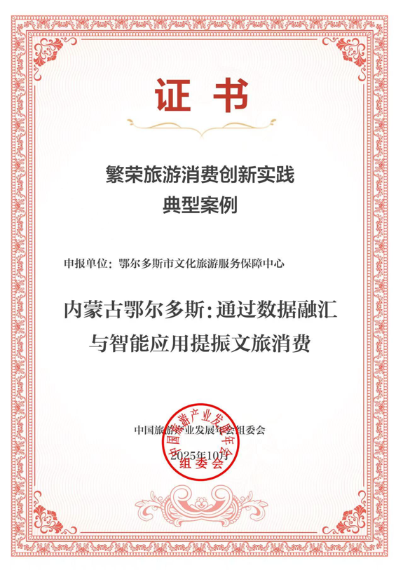鄂爾多斯市“通過(guò)數(shù)據(jù)融匯與智能應(yīng)用提振文旅消費(fèi)”案例入選2025繁榮旅游消費(fèi)創(chuàng)新實(shí)踐典型案例。