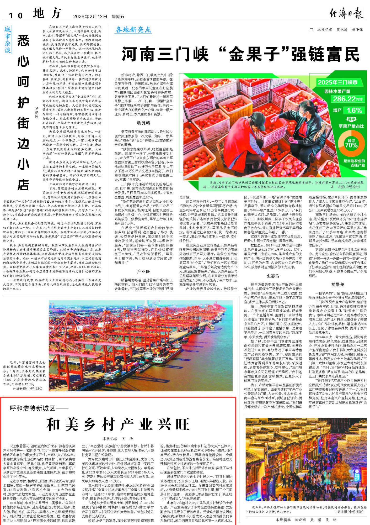 2026年2月13日《經(jīng)濟(jì)日?qǐng)?bào)》第10版刊發(fā)了《呼和浩特新城區(qū)——和美鄉(xiāng)村產(chǎn)業(yè)興旺》的文章,報(bào)道了內(nèi)蒙古呼和浩特市新城區(qū)水磨村、惱包村之變,是和美鄉(xiāng)村建設(shè)的生動(dòng)實(shí)踐。新城區(qū)成功入選全國(guó)首批美麗鄉(xiāng)村先行區(qū),成為內(nèi)蒙古自治區(qū)此次唯一入選的地區(qū)。產(chǎn)業(yè)發(fā)展奠定了鄉(xiāng)村全面振興的基礎(chǔ),文旅融合給村民帶來了新的希望。