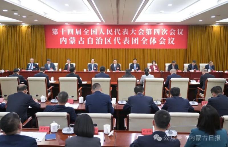 3月3日,出席十四屆全國人大四次會(huì)議的內(nèi)蒙古代表團(tuán)在駐地召開全體會(huì)議。草原云·內(nèi)蒙古新聞網(wǎng)記者 馬建兵 攝