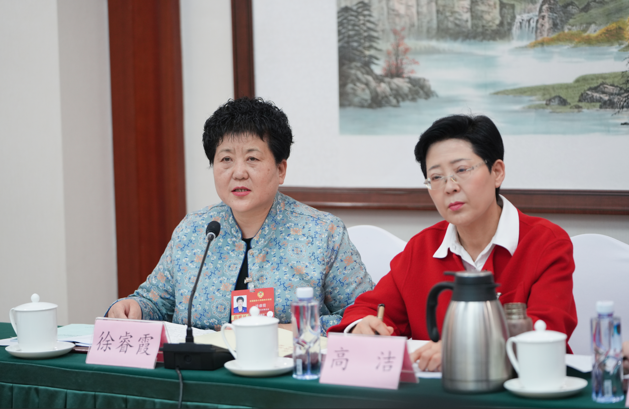 3月5日,住內(nèi)蒙古全國政協(xié)委員徐睿霞(左)建議,設(shè)立烏梁素海生態(tài)保護(hù)與系統(tǒng)治理專項(xiàng)基金,開展跨學(xué)科聯(lián)合攻關(guān),重點(diǎn)研發(fā)低成本、生態(tài)友好的底泥污染治理與資源化利用技術(shù)。草原云記者