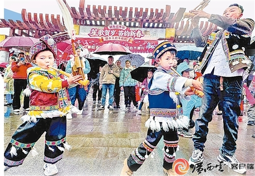 3月8日,廣西柳州市融水苗族自治縣風(fēng)情苗鄉(xiāng)景區(qū)舉行首屆二十坡會(huì),蘆笙踩堂、山歌對(duì)唱等豐富多彩的民俗活動(dòng),吸引眾多市民和游客觀賞、體驗(yàn)。熊平 攝