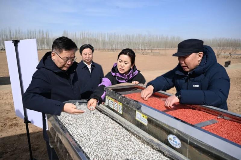 3月15日,包鋼在臨河農(nóng)場詳細(xì)了解種子、肥料等農(nóng)資準(zhǔn)備,詢問高標(biāo)準(zhǔn)農(nóng)田建設(shè)進(jìn)展和優(yōu)質(zhì)農(nóng)產(chǎn)品生產(chǎn)銷售情況。草原云·內(nèi)蒙古新聞網(wǎng)記者 韓卿立 攝