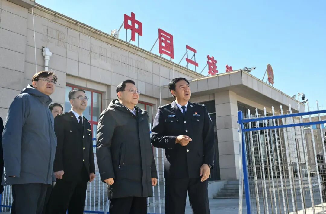 3月22日,自治區(qū)黨委書記、人大常委會(huì)主任王偉中在二連浩特國(guó)門調(diào)研邊境管控等情況。草原云·內(nèi)蒙古新聞網(wǎng)記者 馬建兵 攝