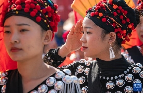 3月2日,景頗族姑娘小琳在目瑙縱歌現(xiàn)場(chǎng)起舞。
