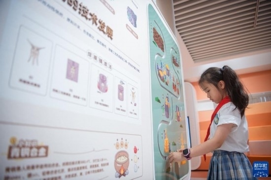 6月1日,小朋友在館內(nèi)體驗交互項目。