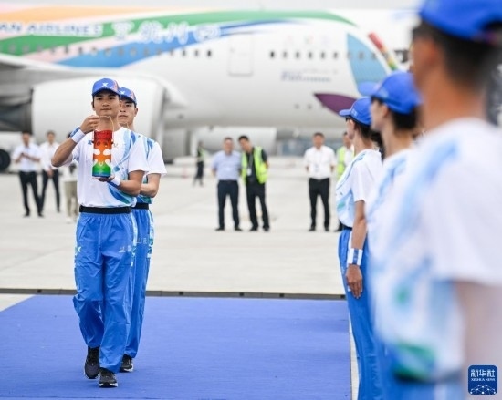 新華社成都6月8日電(記者陳地)8日上午,第31屆世界大學生夏季運動會火炬?zhèn)鬟f啟航儀式在成都天府國際機場舉行?;鹁婊鸱N抵達北京后,將于10日正式開啟成都大運會火炬?zhèn)鬟f。