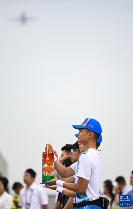 6月8日,在成都天府國際機場,“中國民航英雄機長”劉傳健執(zhí)飛護送成都大運會火炬火種的航班。新華社記者 王曦 攝