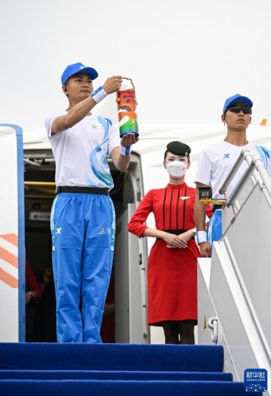 作為大運會官方合作伙伴,四川航空承擔此次火炬?zhèn)鬟f火種航空運輸保障任務(wù)。當日,“大運號”主題彩繪飛機執(zhí)行此次任務(wù),并由“中國民航英雄機長”劉傳健負責執(zhí)飛本次航班。在火種護衛(wèi)隊21名隊員的護送下,火種飛赴火炬?zhèn)鬟f首站城市——北京。從6月10日到7月28日,大運火炬將承載著大運精神,奏響“奮斗青春 放飛夢想”的成都大運會序章。