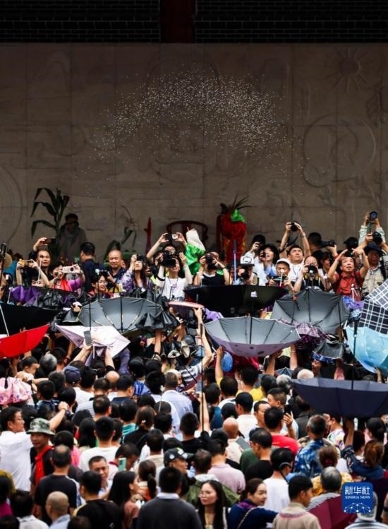 當(dāng)日,廣西環(huán)江毛南族自治縣下南鄉(xiāng)舉行2023毛南族分龍節(jié)民俗活動。分龍節(jié)是毛南族祈神保佑豐收的傳統(tǒng)節(jié)日,也是毛南族一年一度的重大活動。