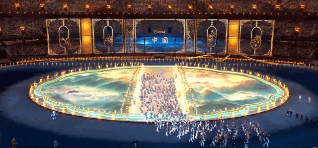 金色數(shù)字人手持火炬,跑過會(huì)場