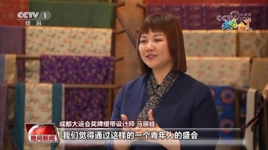 成都大運(yùn)會(huì)獎(jiǎng)牌綬帶設(shè)計(jì)師 馬麗娃:這個(gè)體育賽事其實(shí)是一個(gè)橋梁,通過(guò)這樣一個(gè)青年人的盛會(huì),把我們的優(yōu)秀傳統(tǒng)文化用肉眼可見的形式傳遞出去,我覺得這是非常棒的一種形式。