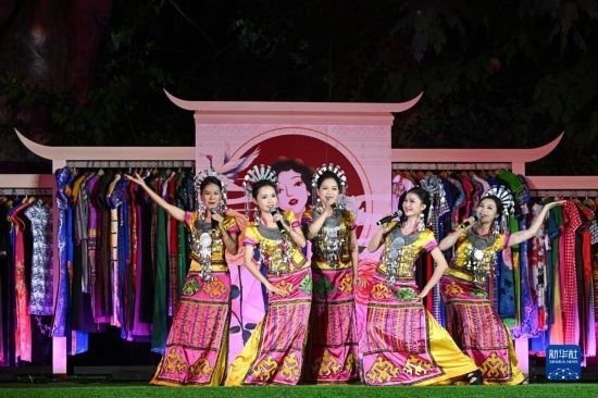 10月22日在海南省五指山市拍攝的民族時(shí)裝“村秀”重陽特別專場活動(dòng)現(xiàn)場。