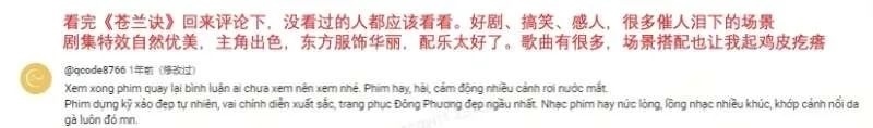 2023年前后,網(wǎng)劇《點(diǎn)燃我,溫暖你》和《長(zhǎng)月?tīng)a明》發(fā)行至越南,迅速占據(jù)Vieon等越南本地視頻平臺(tái)首位。越南觀眾在評(píng)論區(qū)內(nèi)毫不吝嗇自己的喜愛(ài):“我已經(jīng)看了第二遍,每次都會(huì)哭?!薄八畜@人的演員陣容、服裝、風(fēng)景,簡(jiǎn)直太完美了!”