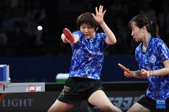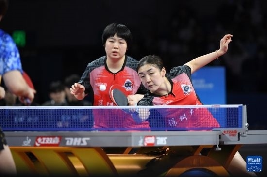 12月22日,深圳大學(xué)隊組合蒯曼/陳夢(右)在女團半決賽中。她們以3比0戰(zhàn)勝華東理工大學(xué)隊組合趙尚/李雅可。最終深圳大學(xué)隊以總比分3比1戰(zhàn)勝華東理工大學(xué)隊。新華社記者 梁旭 攝
