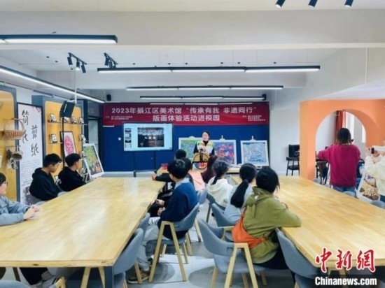 圖為綦江農(nóng)民版畫走進(jìn)校園活動(dòng)現(xiàn)場。 綦江農(nóng)民版畫院 供圖