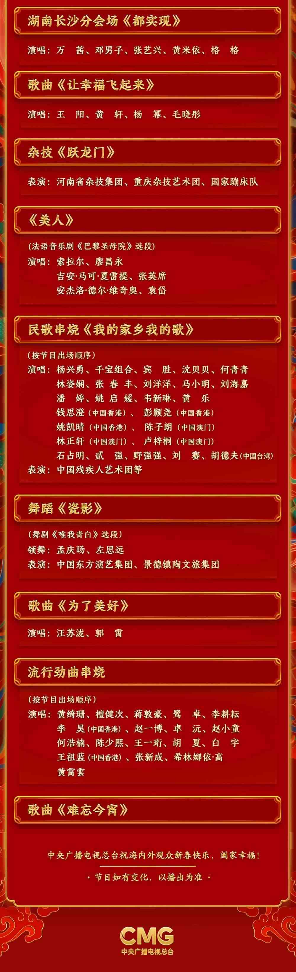 春滿中華,福到萬(wàn)家。中央廣播電視總臺(tái)《2024年春節(jié)聯(lián)歡晚會(huì)》節(jié)目單正式發(fā)布。