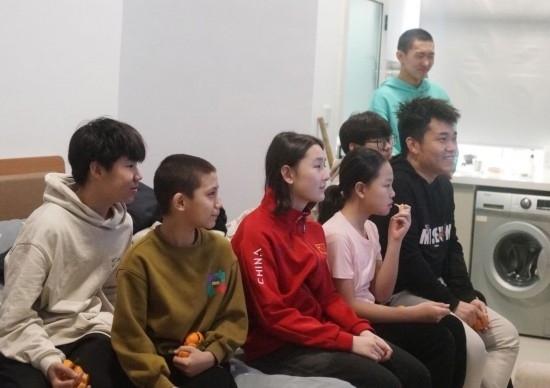 “這是第一次離開爸爸媽媽、離開家鄉(xiāng),和隊(duì)友、教練一起過新年。很興奮,但也很想爸爸媽媽。昨天和大家一起吃了豐盛的年夜飯,還和爸爸媽媽視頻,分享了我的新年?!迸取ぐ⒌亓φf。