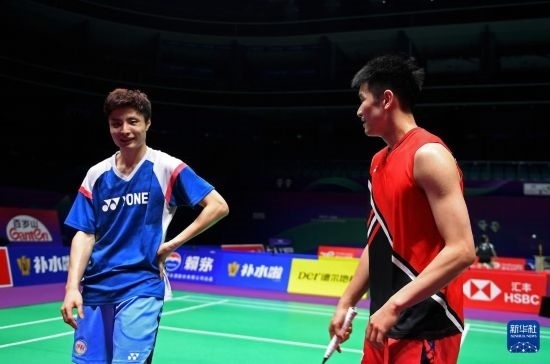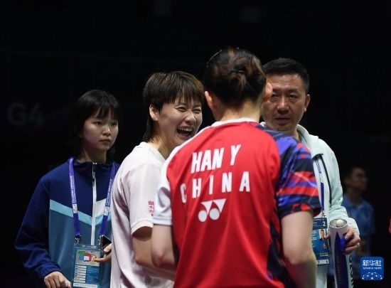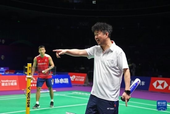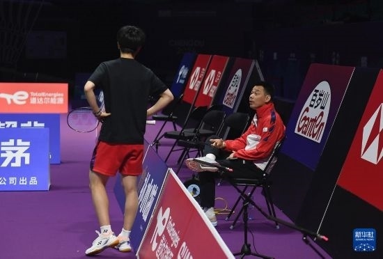 4月26日,中國羽毛球協(xié)會副主席夏煊澤(右)在訓練中指導(dǎo)王祉怡。新華社記者 侯昭康 攝
