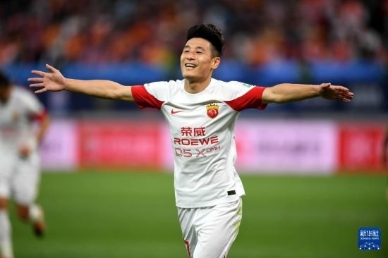 5月1日,上海海港隊球員武磊在比賽中慶祝進球。