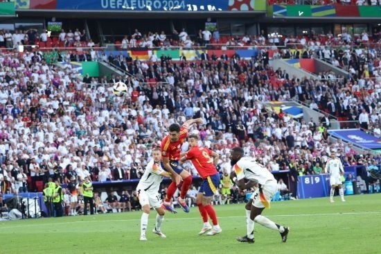 下半場開場德國隊就換上維爾茨和安德里希。第51分鐘,西班牙隊亞馬爾右路帶球進(jìn)入禁區(qū)后橫傳中路,拍馬趕到的奧爾莫推射破門,為本隊先拔頭籌。此后德國隊換上中鋒菲爾克魯格,與哈弗茨形成雙前鋒,逐漸占據(jù)場面主動。第76分鐘,菲爾克魯格禁區(qū)內(nèi)搶點射門擊中立柱。