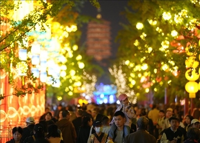今年中秋假期,“京彩燈會(huì)”吸引了超過12萬名游客。國(guó)慶假期前4天,游客量達(dá)7萬余人。除了大飽眼福,燈會(huì)還設(shè)立150余家特色商鋪,覆蓋老字號(hào)、非遺、文創(chuàng)、餐飲美食等,豐富游客體驗(yàn)。多家知名餐飲企業(yè)在燈會(huì)擺攤設(shè)點(diǎn)為游客服務(wù),賞燈之余還能享受大廚現(xiàn)做的星級(jí)美食。