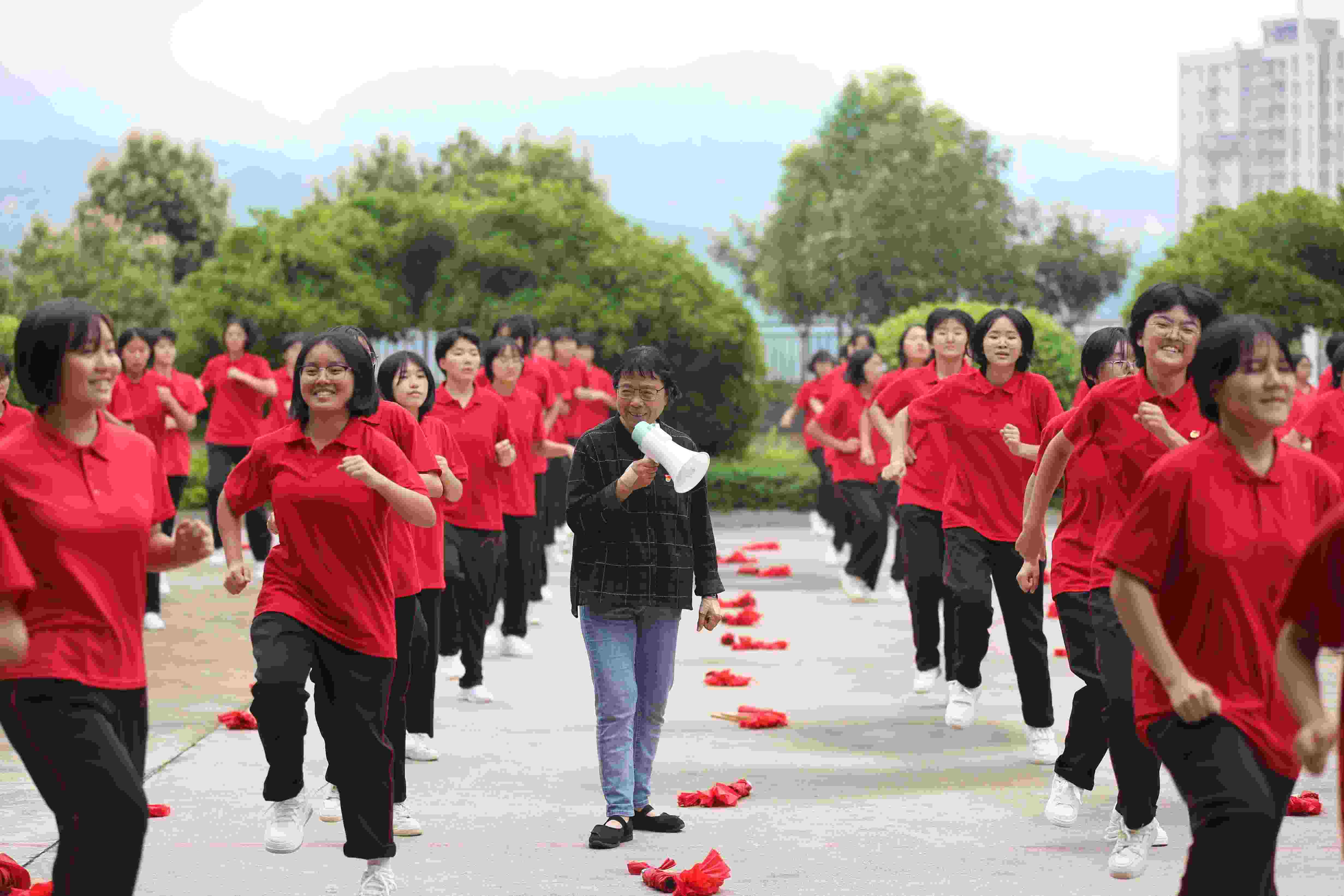我也一直在思考如何讓舞蹈藝術(shù)抵達(dá)更多的人。舞蹈教學(xué)的傳統(tǒng)一直是口傳心授,師父帶徒弟手把手言傳身教,最多同時(shí)教十幾個(gè)學(xué)生。隨著科技進(jìn)步,互聯(lián)網(wǎng)的發(fā)展讓藝術(shù)有了“亮相”的新舞臺(tái)。于是,我在網(wǎng)上開設(shè)舞蹈教學(xué)課堂,把秧歌舞重新編排成簡(jiǎn)單易學(xué)的廣場(chǎng)舞,無(wú)償教給大家。有一次我去基層演出,看到當(dāng)?shù)赜袀€(gè)100多人的隊(duì)伍跳我編排的秧歌舞。我知道10人、20人的舞蹈是什么樣的,但當(dāng)看到100位身著統(tǒng)一服裝的舞者,100張蓬勃向上的笑臉,100條火紅的綢帶拋向天空時(shí),那種震撼,那種感染力,讓我忍不住加入其中,和大家攜手共舞!