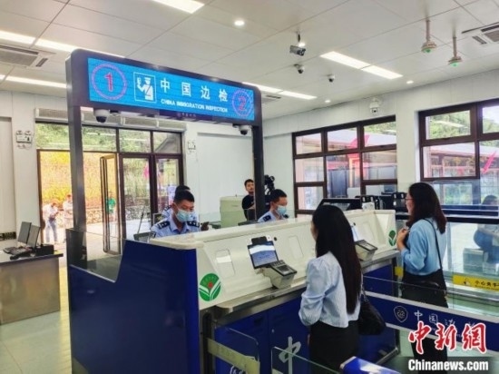 圖為游客正在辦理查驗手續(xù)。中新網(wǎng)記者 黃艷梅 攝