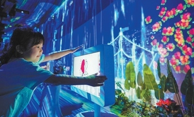 海南三亞的一處體驗(yàn)館內(nèi),小朋友在電腦屏幕上畫(huà)出“心目中的三角梅”。