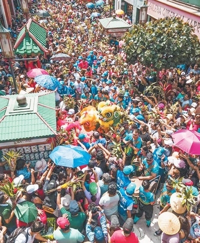 如今,舞龍舞獅已融入秘魯社會。每年中國春節(jié),醒獅團(tuán)都會在唐人街游行表演,喜慶的鑼鼓振奮人心,龍獅獻(xiàn)瑞帶來歡樂祥和。秘魯民眾走上街頭,手持他們稱為“中國竹子”的轉(zhuǎn)運(yùn)竹,簇?fù)碓邶埅{周圍,爭相看一看、摸一摸,希望沾上喜氣與幸運(yùn)——這已成為秘魯一大民俗。在秘魯人的婚禮上,舞獅已成為一種時尚。