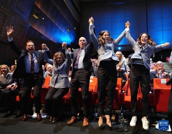 這是2024年7月24日,在巴黎進(jìn)行的國際奧委會第142次全會上,美國鹽湖城代表團成員慶祝獲得2034年冬奧會舉辦權(quán)。新華社記者 孫非 攝