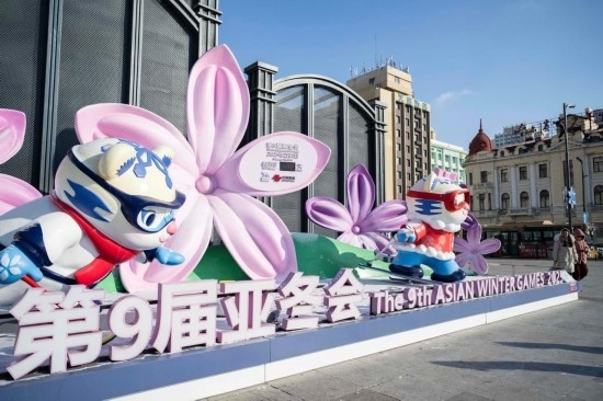 哈爾濱街頭的亞冬會吉祥物造型可愛。新華社記者 謝劍飛 攝
