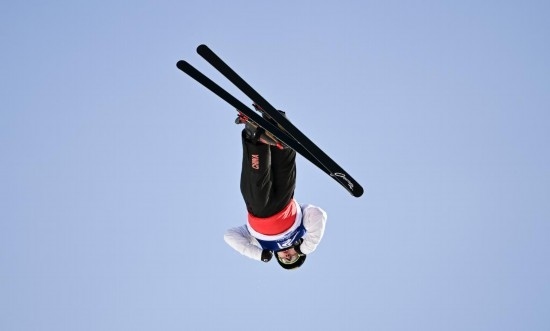 2月9日,李心鵬在落地時(shí)發(fā)生失誤。新華社記者 夏一方 攝
