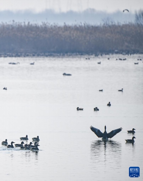 這是2月26日在天津七里海濕地自然保護(hù)區(qū)拍攝的候鳥。