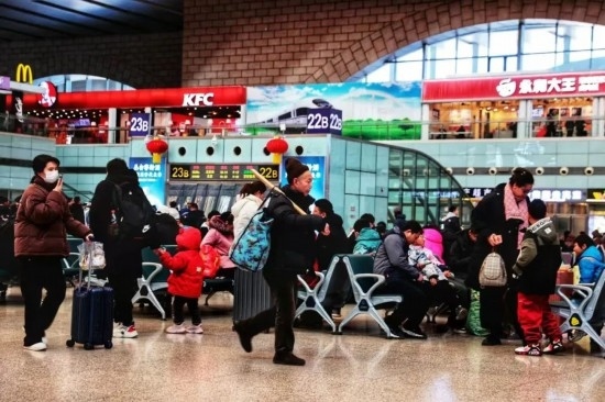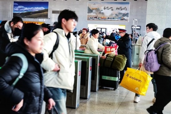 2月5日迎來(lái)返程高峰,邯鄲站內(nèi)的旅客依次檢票進(jìn)站。