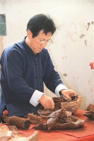 胡新明是鳳翔泥塑國家級非遺代表性傳承人。從11歲學“泥?;睢遍_始,他與鳳翔泥塑結緣已有半個世紀。