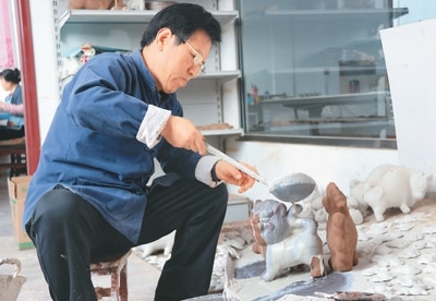 前些年,胡新明大膽嘗試,在泥里加入紙漿、棉花、面糊、糯米汁等,反復試驗,研制出“摔不爛”的泥塑;創(chuàng)新泥塑造型,讓各類產(chǎn)品推陳出新。
