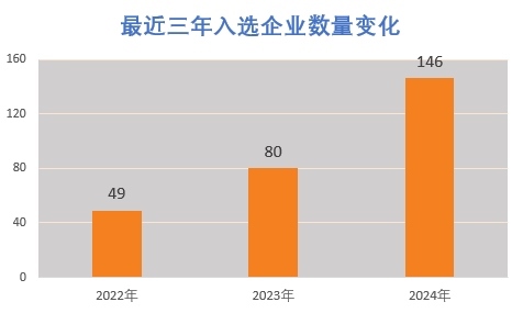 據(jù)了解,入選企業(yè)評選標(biāo)準(zhǔn)非常嚴(yán)格,需同時滿足專業(yè)化、精細(xì)化、特色化、創(chuàng)新能力、產(chǎn)業(yè)鏈配套等多個指標(biāo)。盡管如此,2024年名單中的企業(yè)與2022年49家和2023年80家相比,大幅增加到146家。