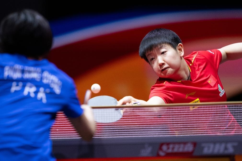 5月19日,孫穎莎在比賽中回球。新華社記者 肖藝九 攝