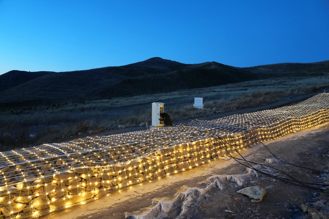 這是崇禮長城景觀展示亮化工程現(xiàn)場的燈帶(12月30日攝)。新華社記者 楊世堯 攝