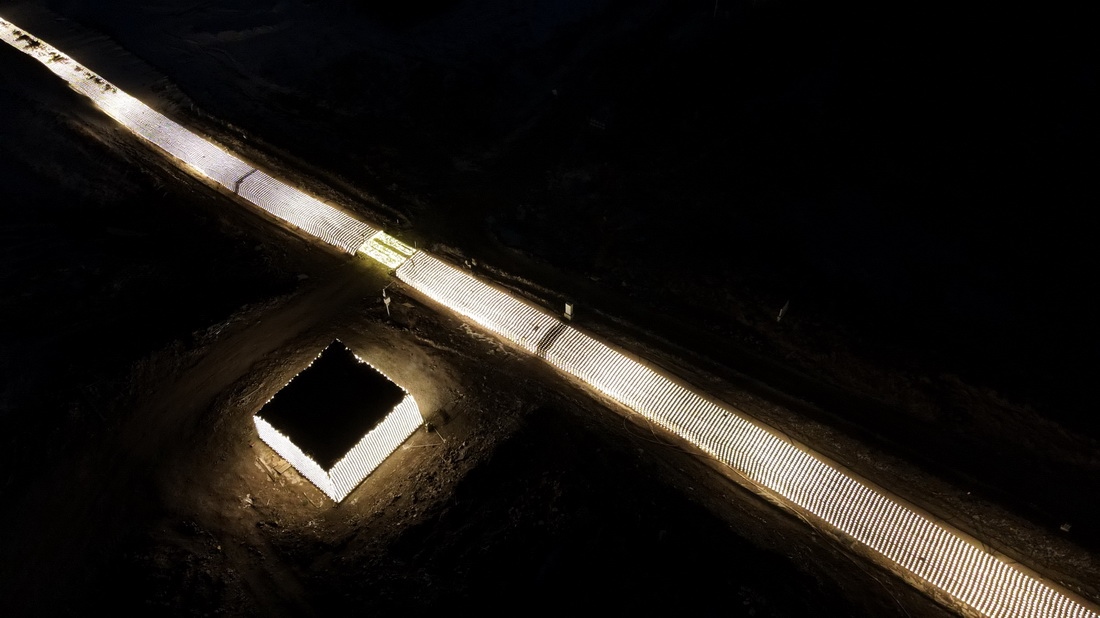 這是12月30日拍攝的崇禮長城景觀展示亮化工程現(xiàn)場(無人機照片)。新華社記者 牟宇 攝