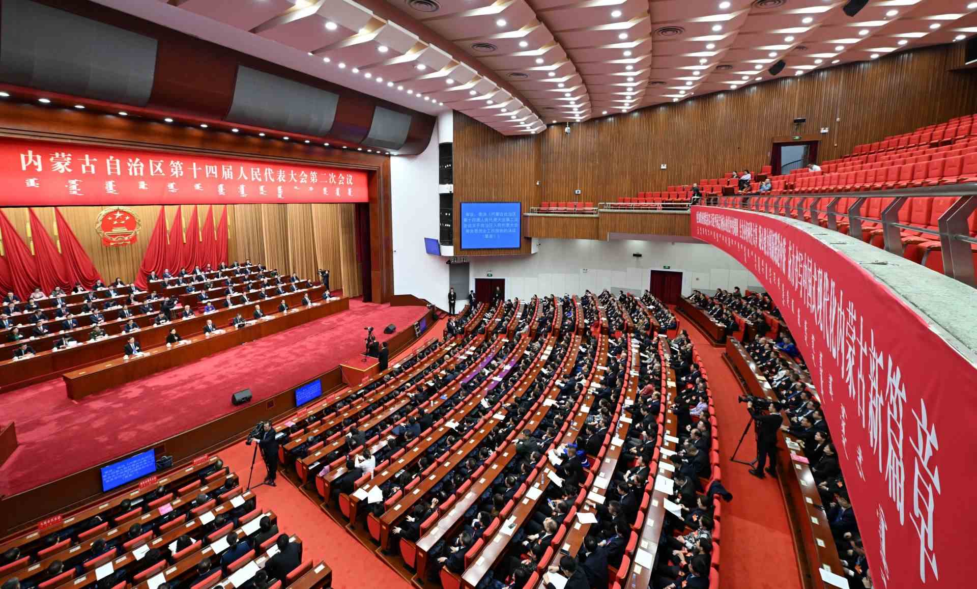 2月2日下午,自治區(qū)十四屆人大二次會(huì)議圓滿完成各項(xiàng)議程,在內(nèi)蒙古人民會(huì)堂勝利閉幕。本次大會(huì)審議批準(zhǔn)了人大常委會(huì)工作報(bào)告和“一府兩院”工作報(bào)告等6個(gè)報(bào)告,審議通過了關(guān)于修改內(nèi)蒙古自治區(qū)人民代表大會(huì)及其常務(wù)委員會(huì)立法條例的決定,圓滿完成了選舉任務(wù)。會(huì)議期間,全體人大代表肩負(fù)著全區(qū)各族人民的重托,認(rèn)真履行憲法和法律賦予的職責(zé),發(fā)揚(yáng)民主、履職擔(dān)當(dāng)、建言獻(xiàn)策、共商大計(jì)。代表們紛紛表示,要牢記囑托、感恩奮進(jìn),以鑄牢中華民族共同體意識(shí)為各項(xiàng)工作的主線,砥礪前行、苦干實(shí)干,為奮力書寫中國式現(xiàn)代化內(nèi)蒙古新篇章貢獻(xiàn)力量。