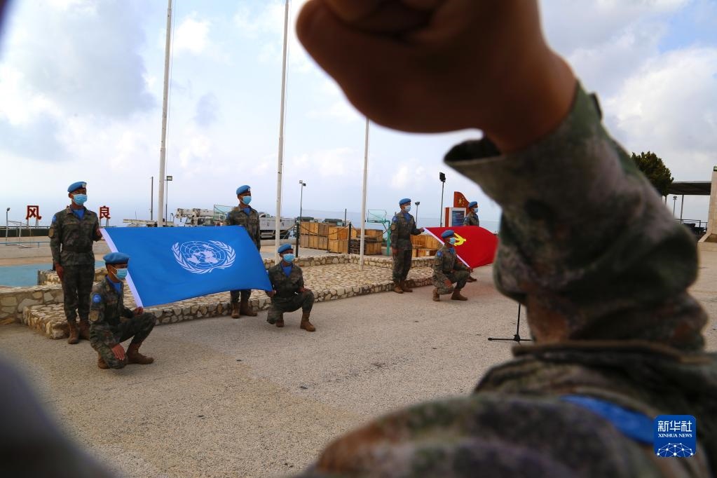 “我宣誓:忠于黨,忠于社會(huì)主義,忠于祖國(guó),忠于人民……揚(yáng)藍(lán)盔精神,展大國(guó)形象,為祖國(guó)爭(zhēng)光,為軍旗添彩?!敝袊?guó)共產(chǎn)主義青年團(tuán)成立100周年之際,在黎巴嫩南部提爾市沙馬村的中國(guó)維和營(yíng)區(qū),中國(guó)第20批赴黎巴嫩維和建筑工兵分隊(duì)的官兵們頭戴貝雷帽,身穿配有五星紅旗臂章的星空迷彩服,擺成數(shù)字“100”的隊(duì)形,面向國(guó)旗和聯(lián)合國(guó)旗莊嚴(yán)宣誓。