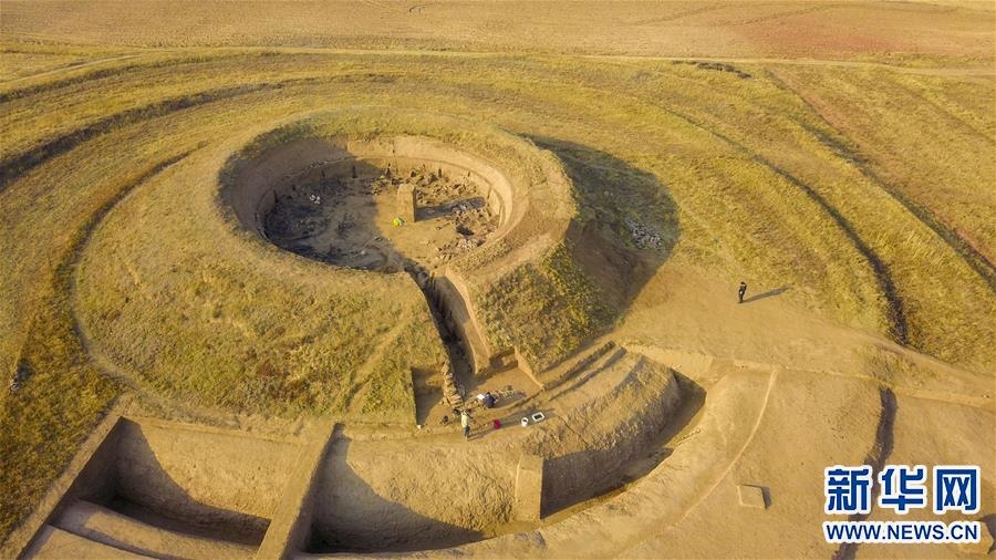 這是10月25日拍攝的呼和浩特市武川縣境內(nèi)的北魏皇帝祭天遺址發(fā)掘現(xiàn)場(chǎng)(無(wú)人機(jī)照片)。新華社記者 彭源 攝 -